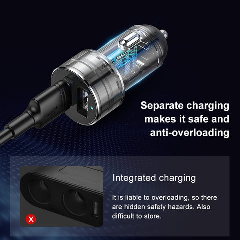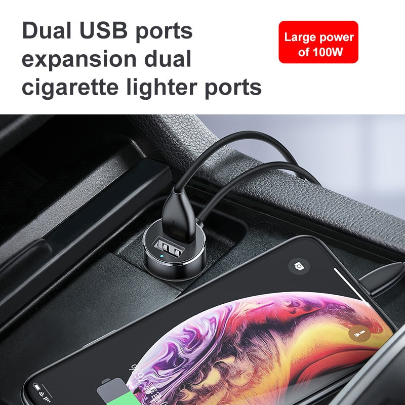 Com o carregador veicular rápido da BASEUS, você pode recarregar seu celular ou qualquer outro eletrônico compatível no seu veículo com uma velocidade incrível! São 100W de potência para carregar seu aparelho em velocidade turbo na conveniência e conforto do seu carro. A linha Premium da marca conta com excelente acabamento que parece até fazer parte do painel do veículo. Possui design super pequeno, que pode ser completamente escondido na tomada de isqueiro, deixando um visual muito mais limpo e você nem percebe que ele está ali, aparentando ser um acessório de fábrica do seu carro. O Carregador conta com 2 saídas USB para você carregar dois aparelhos simultaneamente. É ideal para todas as situações, de viagens curtas e/ou longos trajetos.